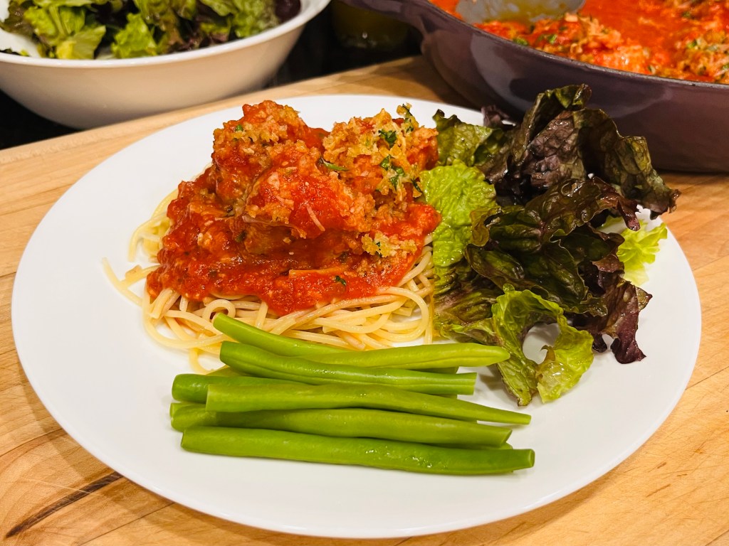 Roasted green beans (blah! why do I ever make them this way!?) and salad rounded out the meal.