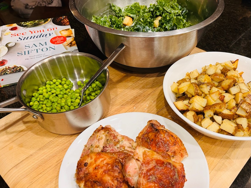 The girls did not enjoy the radicchio, but they did enjoy the chicken with cooked farro, topped with parmesan cheese, and roasted butternut squash.