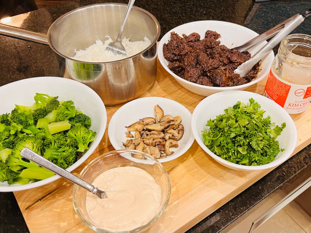We ate our BBQ beef as a deconstructed burrito bowl with steamed broccoli, kimchi, and sautéed frozen shitake mushrooms. I enjoyed the flavor of the beef, but my meat was super tough. This was likely due to the fact that I attempted to make it in my Dutch oven in a 300 degree oven.